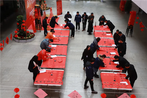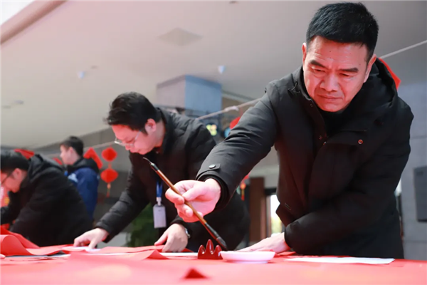 次日,來自寧鄉市書法家協會的書法大家們受邀來到中部產業基地,參加“翰墨中偉”寫春聯送祝福活動?;顒蝇F場,書法家們用紅紙黑字、筆墨紙硯傳遞著新春的溫暖與祝福。